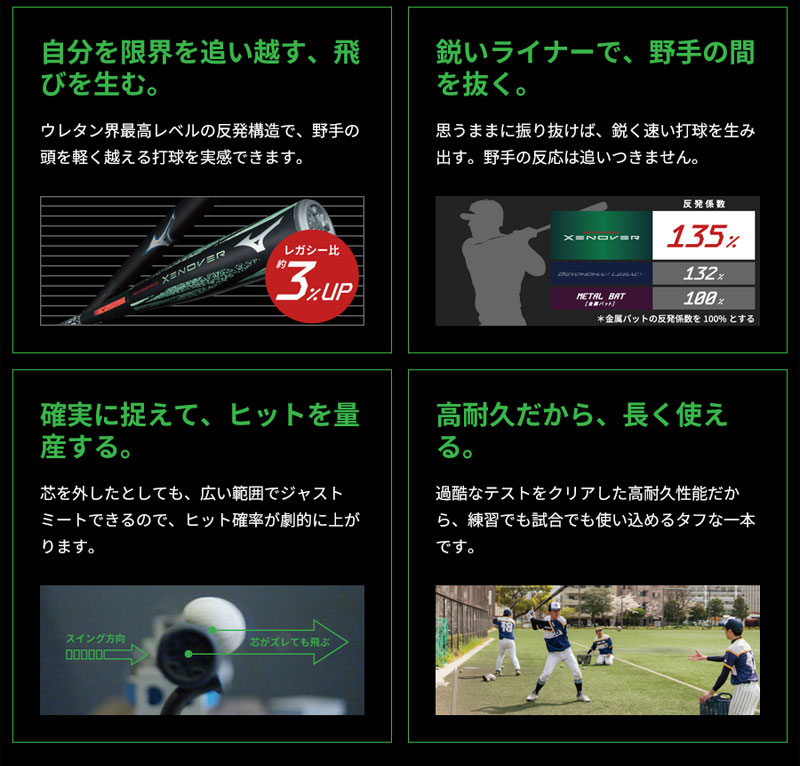(2)ウレタン素材「ミズノゼノバーPUフォーム」がボールに食いつき芯からズレても飛距離がでる。