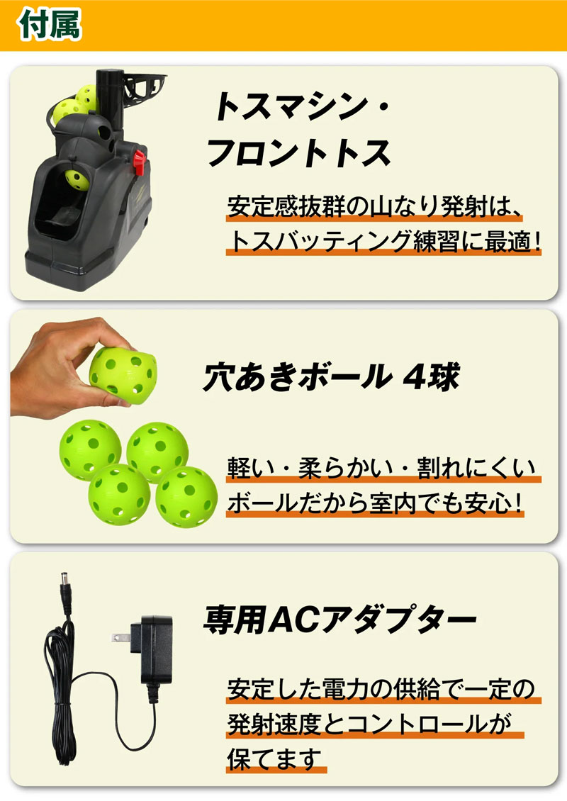 トスマシン・フロントトス1台/穴あきボール4球/ACアダプター