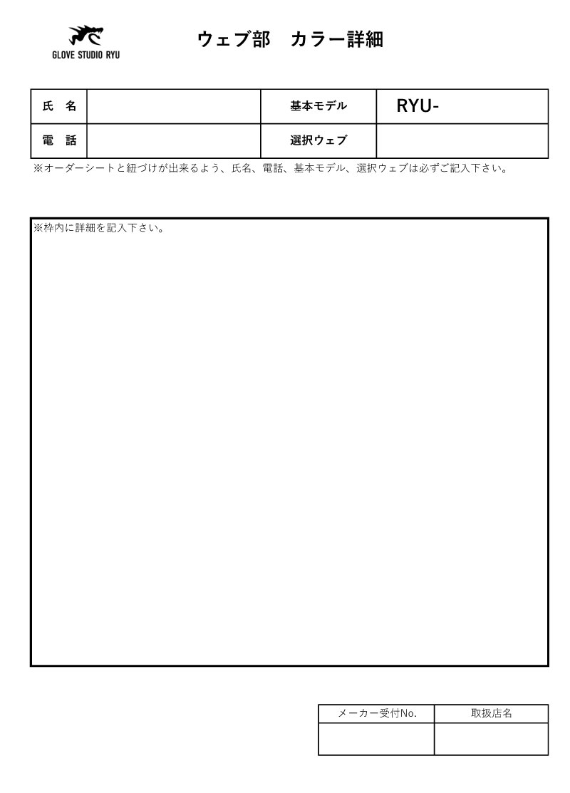 【GLOVE STUDIO RYU/リュウ】 硬式グラブ オーダーグラブ 野球 硬式グローブ オーダーグローブ RYU ORDER GLOVE 一般 大人 RYU-ORDER